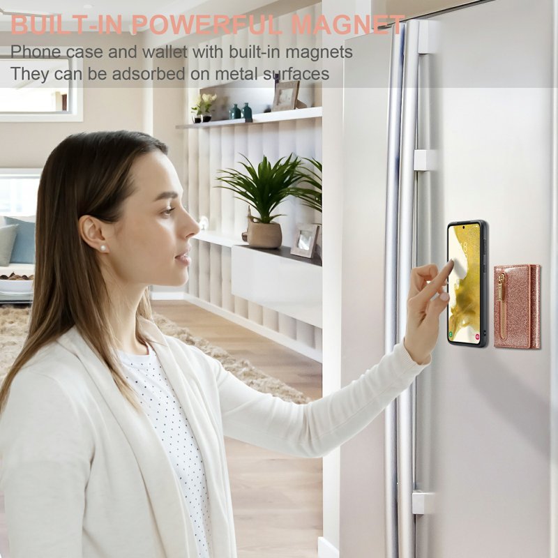 Denna stiliga läderplånbok kombinerar en hybridtelefonfodral i en praktisk lösning. Med starka magneter fäster plånboken och telefonfodralet säkert ihop. Njut av både elegans och funktionalitet i ett och samma tillbehör.