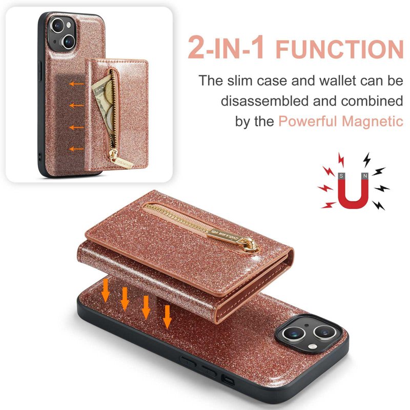 Upptäck den perfekta kombinationen av stil och funktionalitet med vår två-i-ett läderplånbok och mobilskal. Denna innovativa design erbjuder säker förvaring för både din telefon och dina kort. Med högkvalitativa material och en glittrande yta är detta ett måste för den moderna användaren.