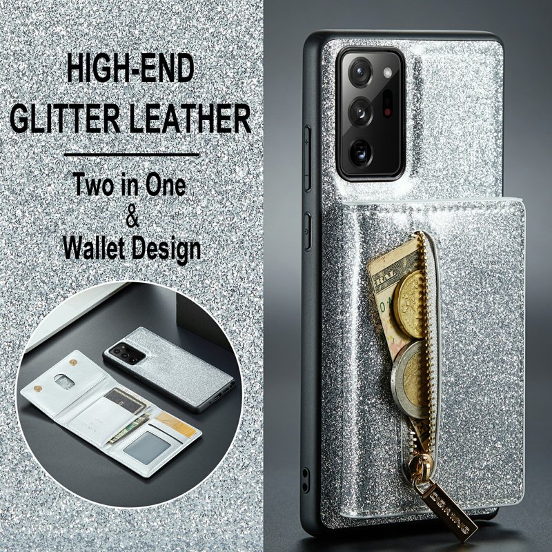 Upptäck den perfekta kombinationen av stil och funktionalitet med vår 2-i-1 plånbok och mobilfodral. Denna produkt erbjuder en säker och elegant lösning för att skydda din telefon samtidigt som du har dina kort och kontanter nära till hands. Med en glittrande yta får din enhet en unik och iögonfallande look.