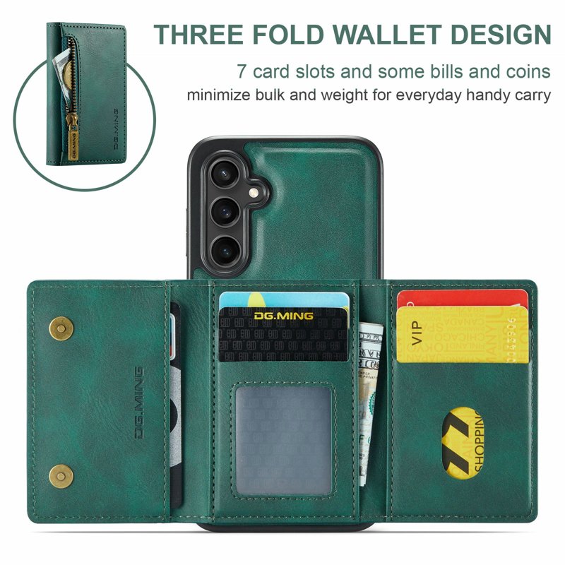 - Rymlig plånbok: Flera kortfack, en sedelfack och en dragkedjeficka för att rymma dina nödvändigheter.