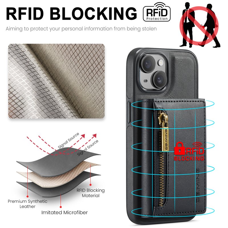 - RFID-blockering: Avancerad RFID-blockering skyddar dina kort från obehöriga skanningar och säkerställer din personliga information.