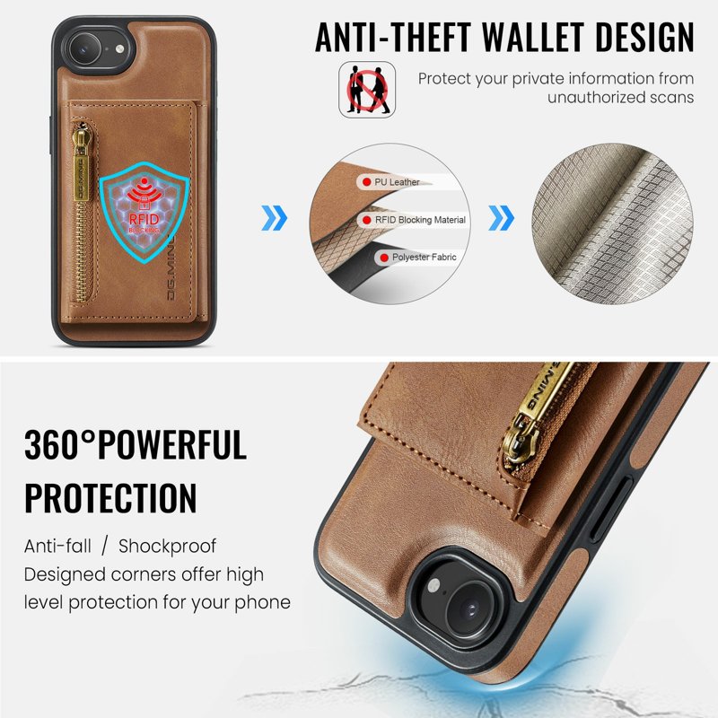 - Rymlig plånbok: Flera kortfack, en sedelfack och en dragkedjeficka för dina nödvändigheter.