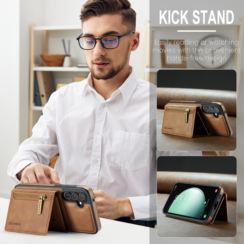 - Justerbar ställning: Plånboken fungerar som ett stativ för handsfree-visning med justerbara vinklar.