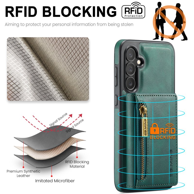 - RFID-blockering: Avancerad RFID-blockering skyddar dina kort från obehöriga skanningar och håller din information säker.