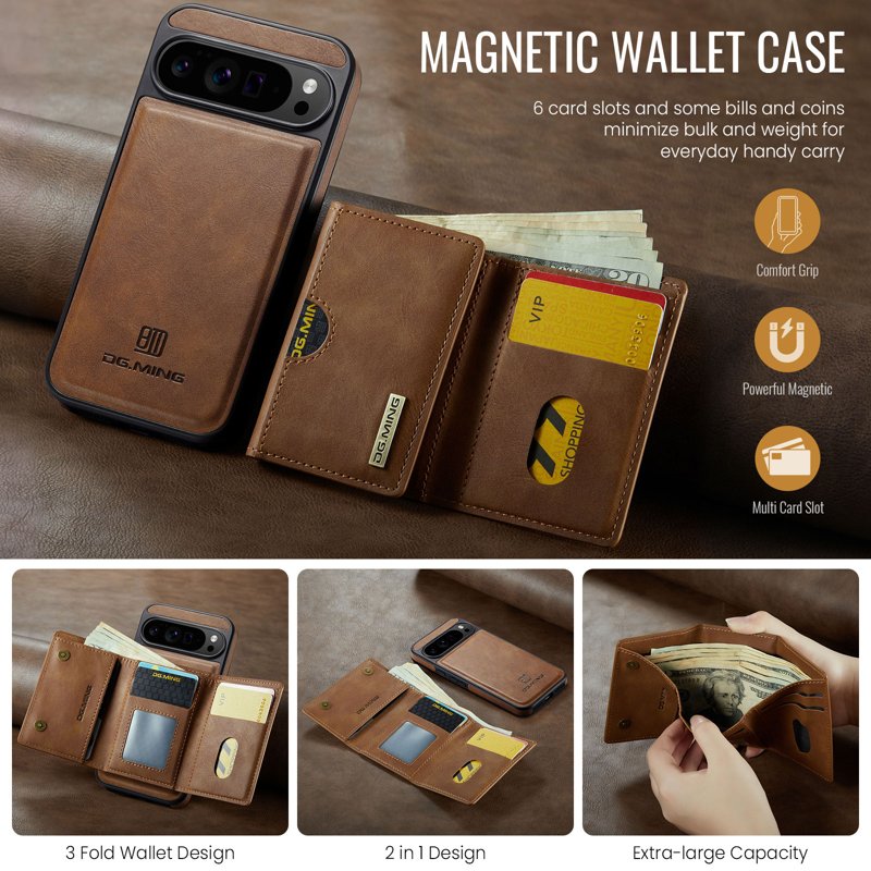 - Avtagbar Magnetisk Trifold Plånbok: Rymmer kort, ID och kontanter för enkel åtkomst.