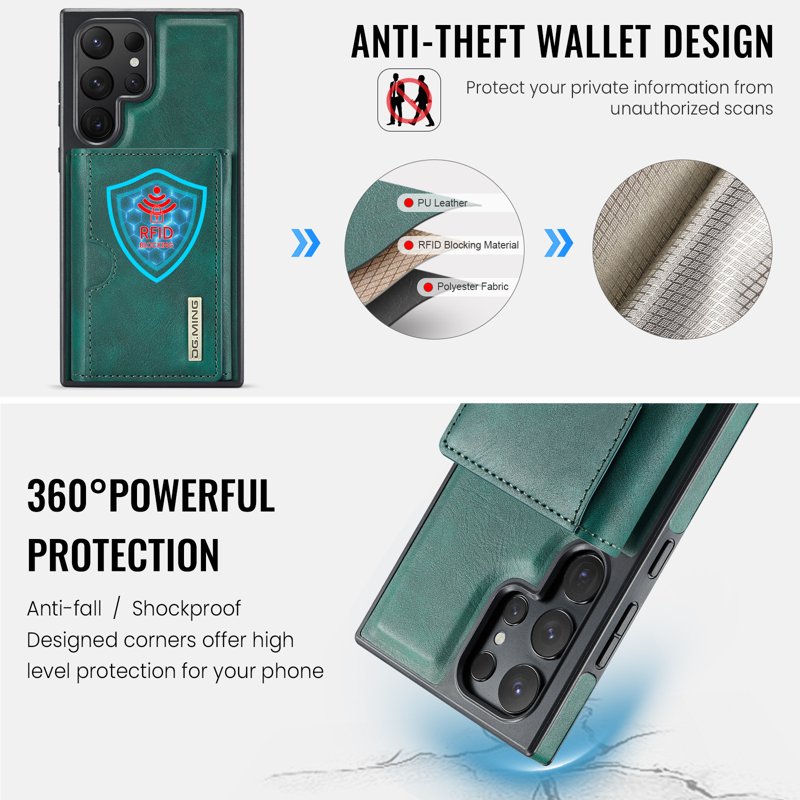 - RFID-skydd och ställfunktion: Skyddar dina kort från obehörig scanning och fungerar som ett ställ för handsfree-visning.