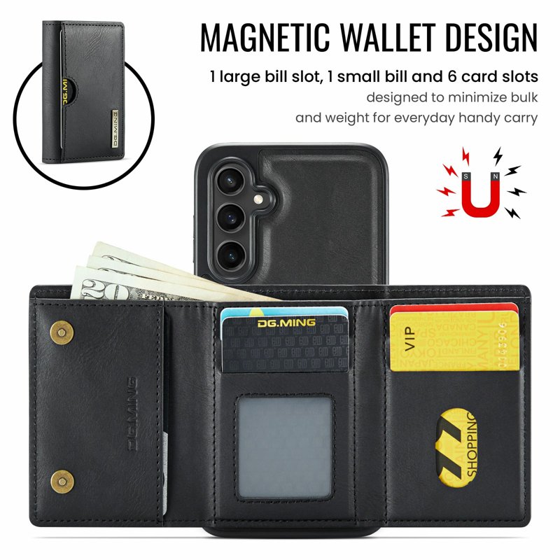 - Avtagbar Magnetisk Trifold Plånbok: Rymmer kort, ID och kontanter för enkel åtkomst.