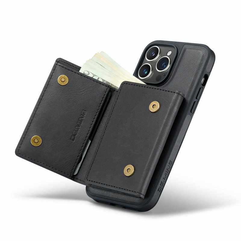 - Avtagbar magnetisk plånbok: Plånboken har tre fack för kort, ID och kontanter, vilket ger enkel åtkomst.