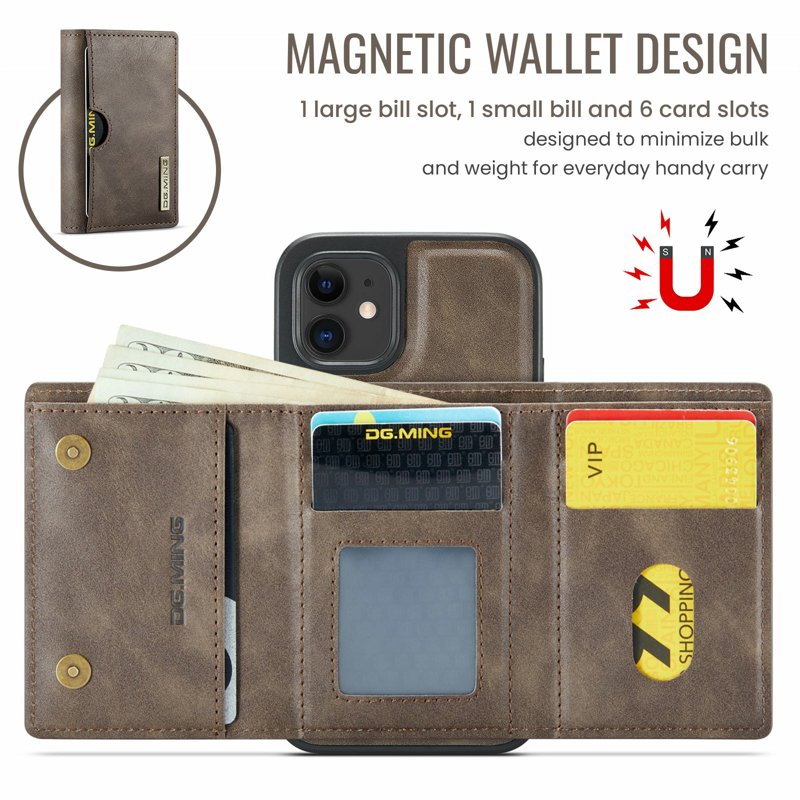 - Detachable Magnetic Trifold Wallet: Inkluderar en avtagbar plånbok med plats för kort och kontanter.