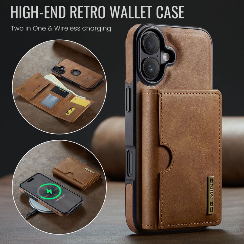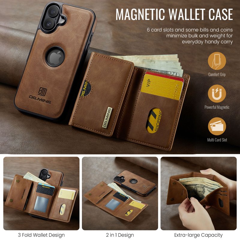 DG.MING M6 Series iPhone 17 Skal Magnetiskt Plånboksfodral Brun