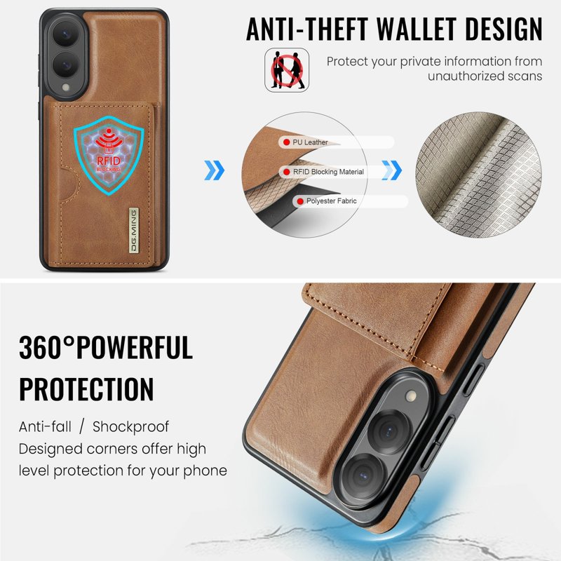 - Avtagbar magnetisk plånbok: Inkluderar en plånbok med tre fack för kort, ID och kontanter.