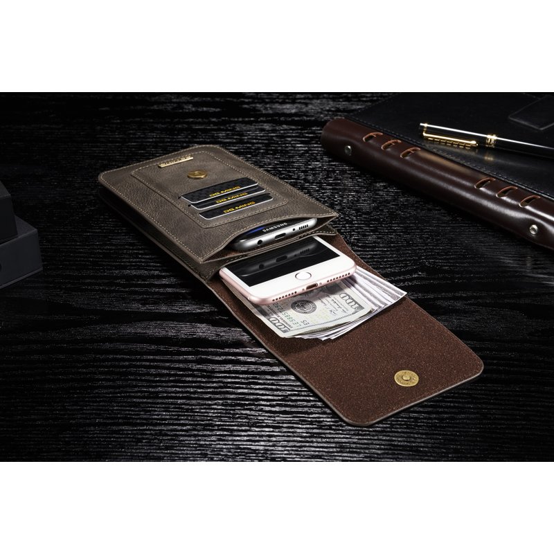 Detta läderfodral är både stiligt och funktionellt. Tillverkat av slitstarkt splitläder, erbjuder det en hållbar konstruktion. Med plats för två smartphones och flera kort, är det perfekt för den som vill ha allt samlat. Fodralet har även praktiska fästen för enkel transport.