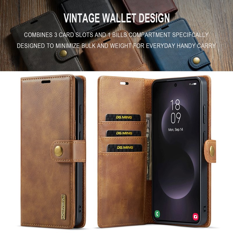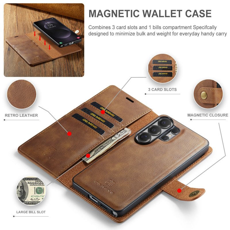DG.MING för Samsung Galaxy S26 Ultra är en praktisk och stilren telefonfodral med avtagbar plånbok och ställfunktion. Denna produkt kombinerar funktionalitet och skydd, vilket gör den till det perfekta valet för den moderna användaren. Med sin eleganta bruna design och smarta funktioner håller den din telefon säker och dina viktiga tillhörigheter organiserade.