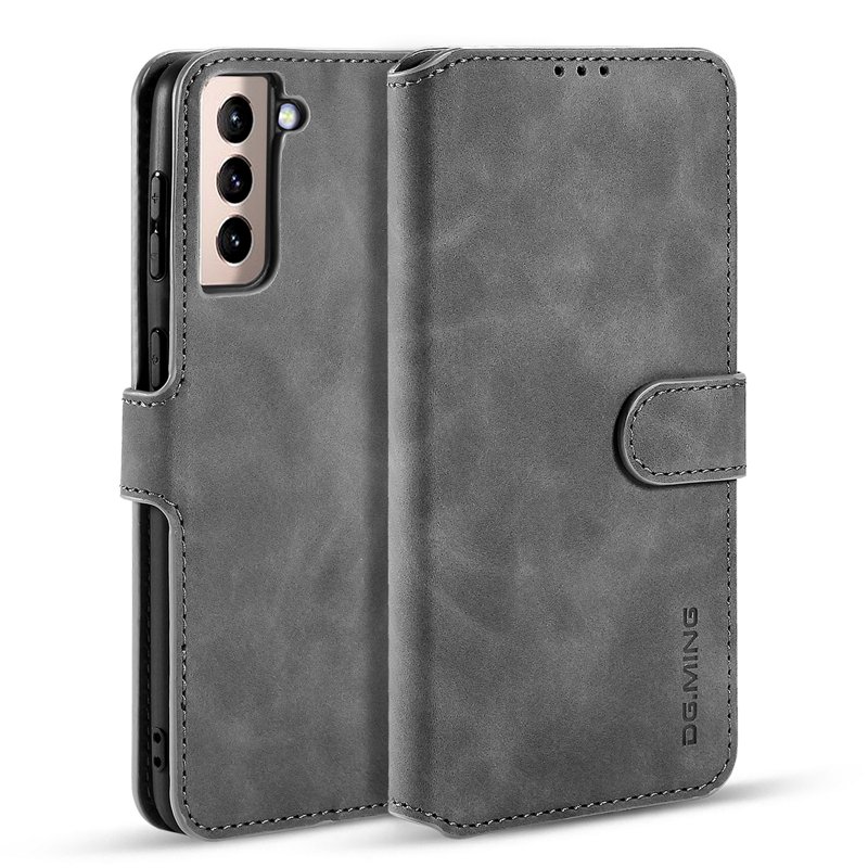 DG.MING Retro Läderfodral för Samsung Galaxy S21+ 5G - Grå
