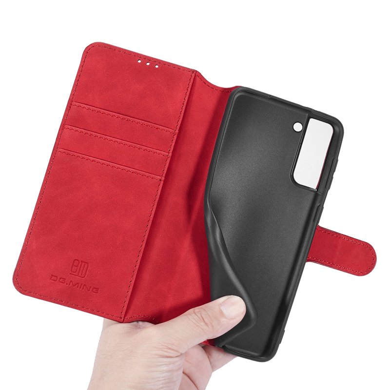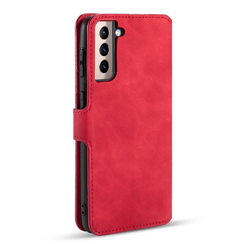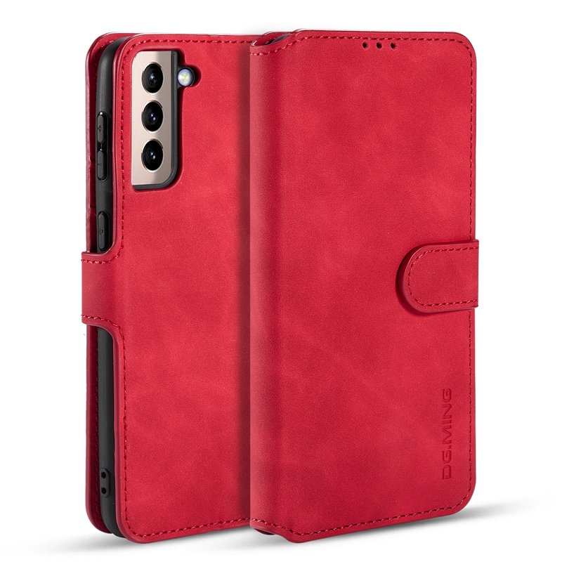 DG.MING Retro Läderfodral för Samsung Galaxy S21+ 5G - Röd