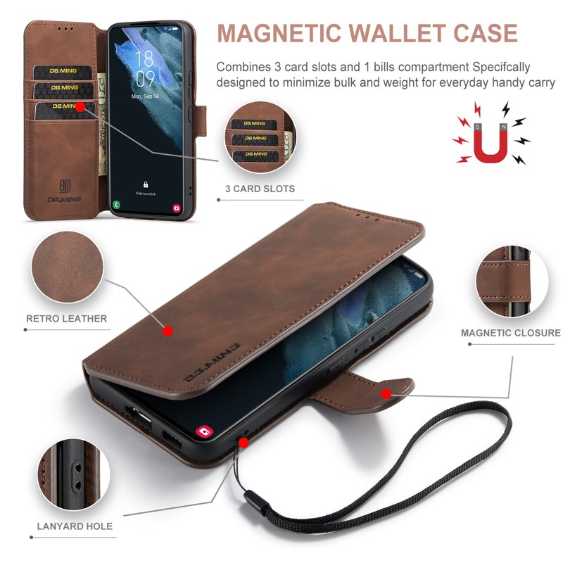 DG.MING Plånboksfodral Konstläder för Samsung Galaxy S22+ 5G - Brun