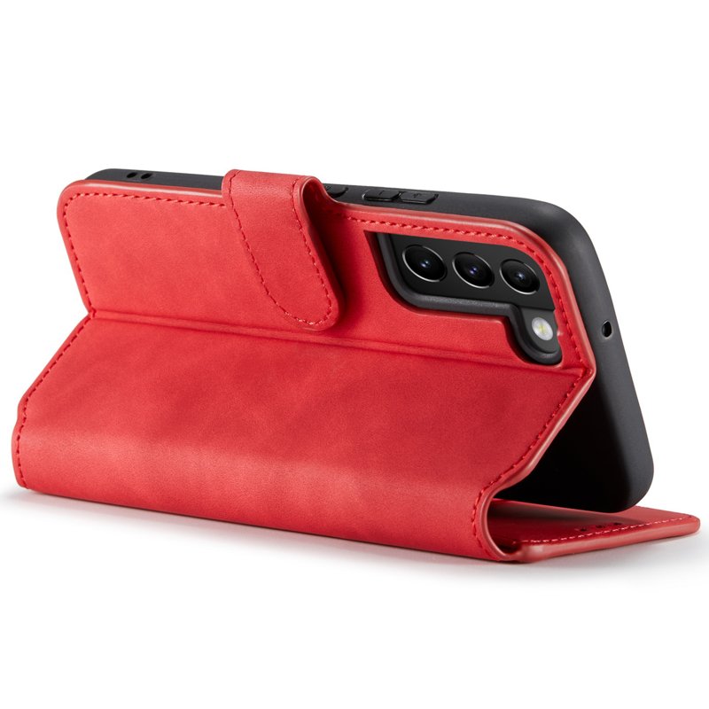 DG.MING Plånboksfodral Konstläder för Samsung Galaxy S22+ 5G - Röd