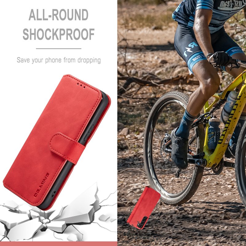 Handla denna produkt DG.MING Plånboksfodral Konstläder för Samsung Galaxy S22+ 5G - Röd