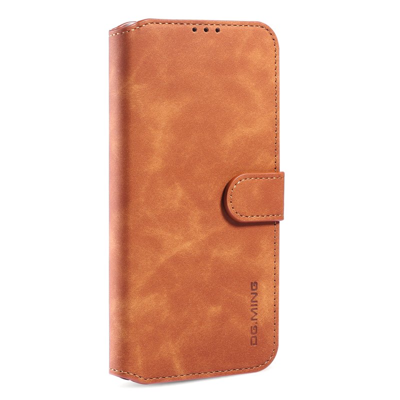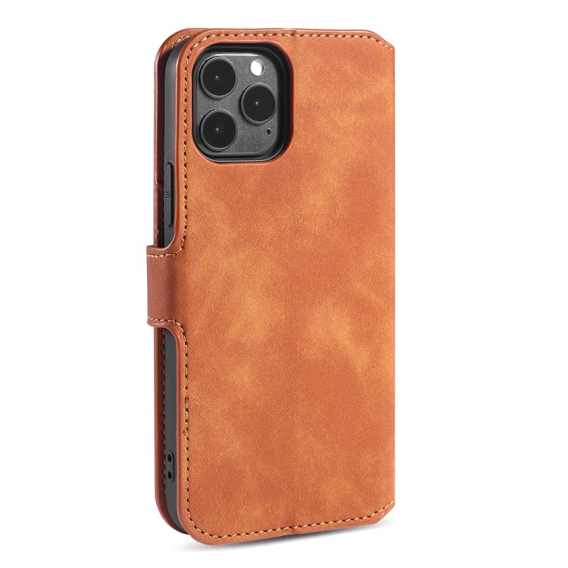 DG.MING Retro Läderfodral med Ställ för iPhone 13 Pro Max - Brun