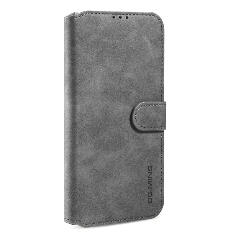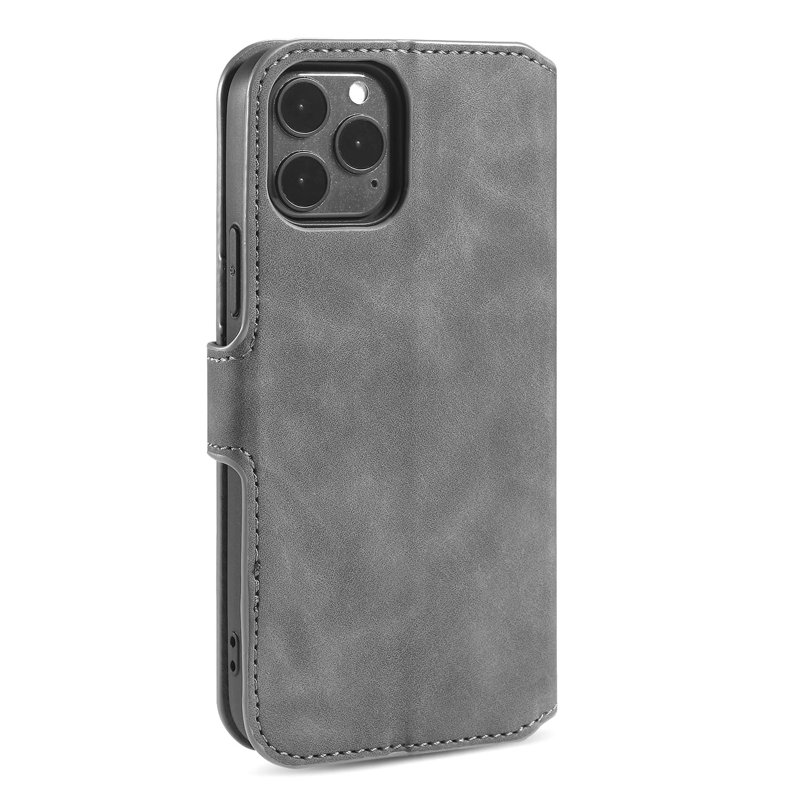 DG.MING Retro Läderfodral med Ställ för iPhone 13 Pro Max - Grå