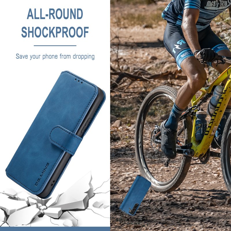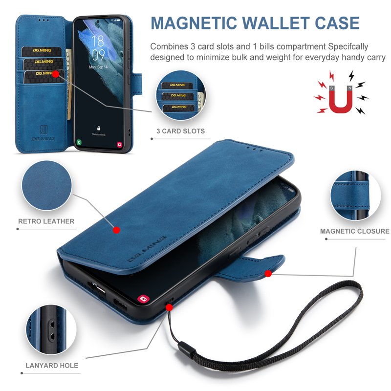 DG.MING Plånboksfodral Konstläder Skyddande Ställ Samsung Galaxy S22+ Blå