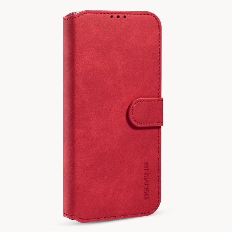 DG.MING Retro Läderplånbok för iPhone 12 Pro - Röd