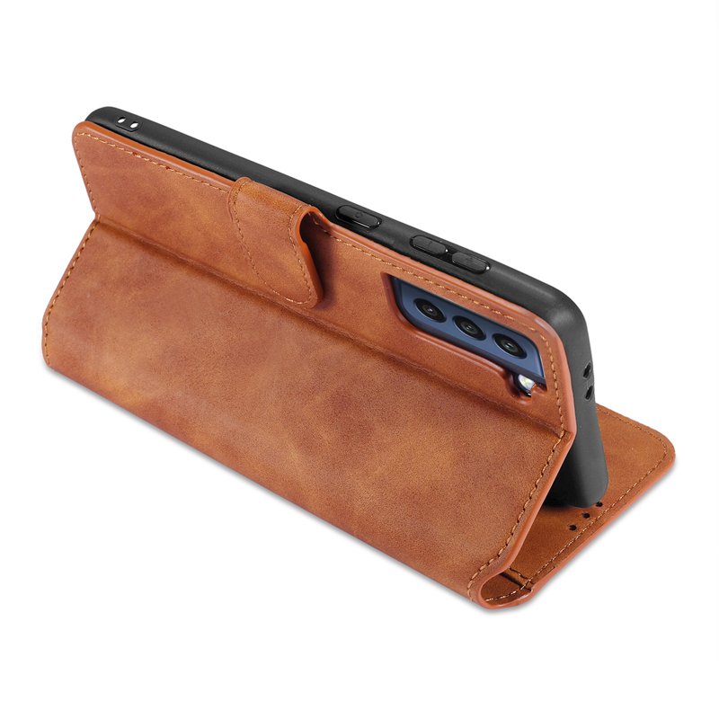Denna plånboksfodral är tillverkat av flexibelt TPU och PU-läder. Det är slitstarkt och stötsäkert. Fodralet har kortfack och en plats för kontanter, vilket gör det enkelt att ha med sig det viktigaste. Det kan även vikas till en ställning för handsfree-videokonferenser och filmvisning.