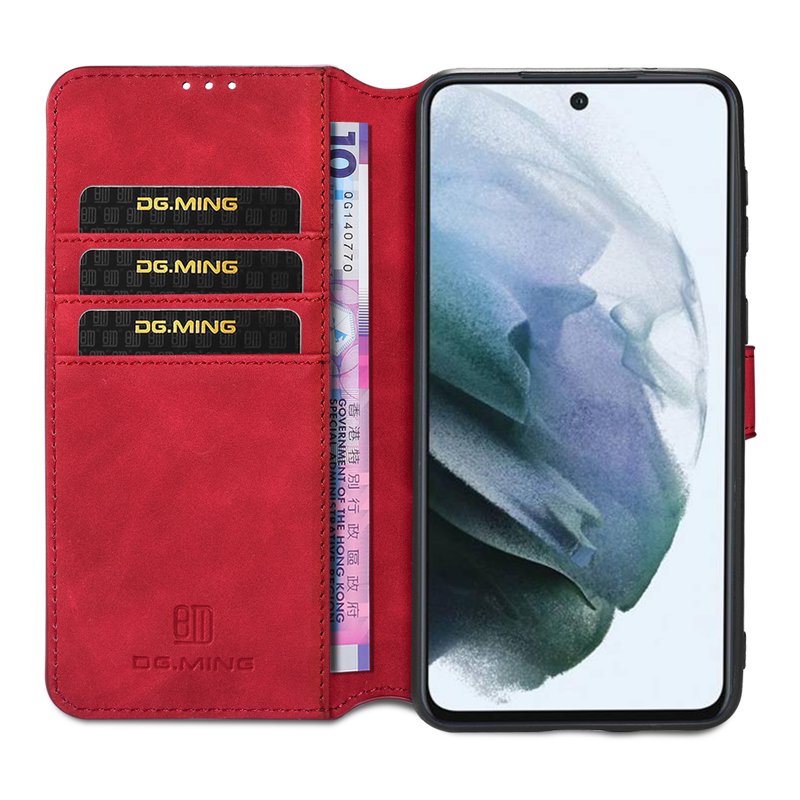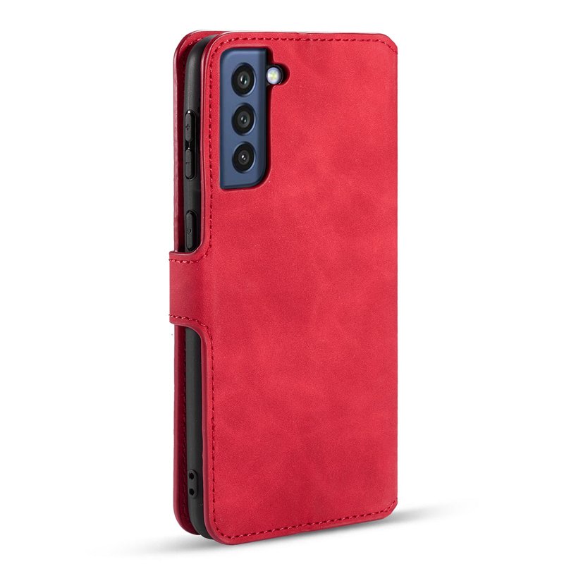 DG.MING Retro Style Läderfodral till Samsung Galaxy S21 FE - Röd