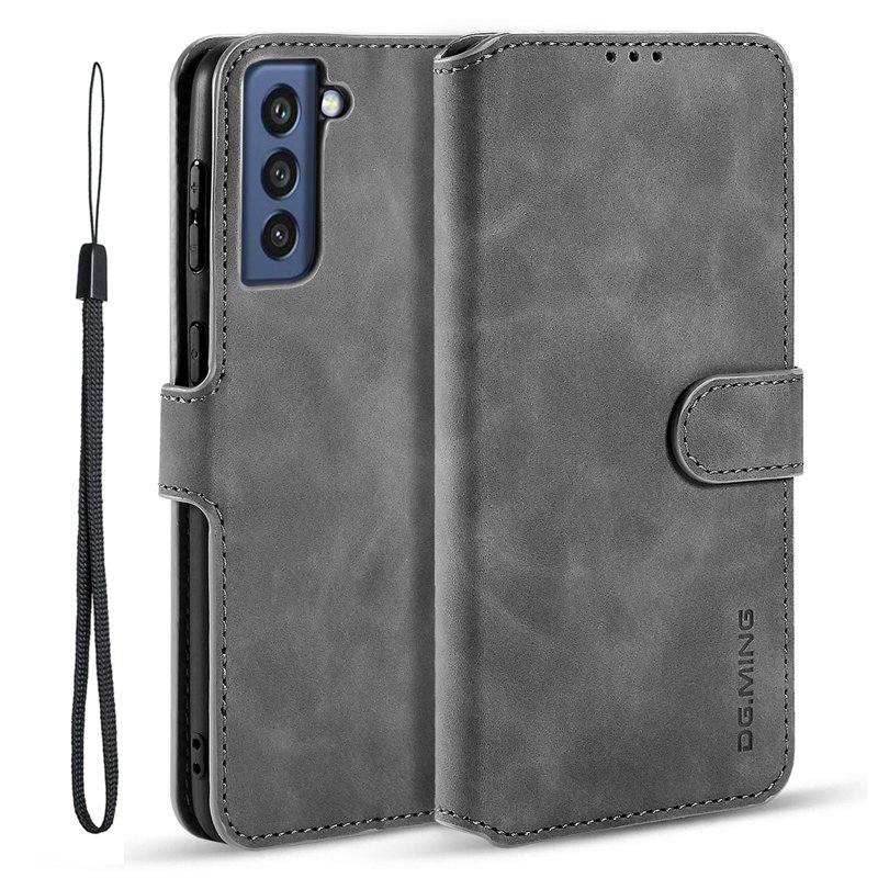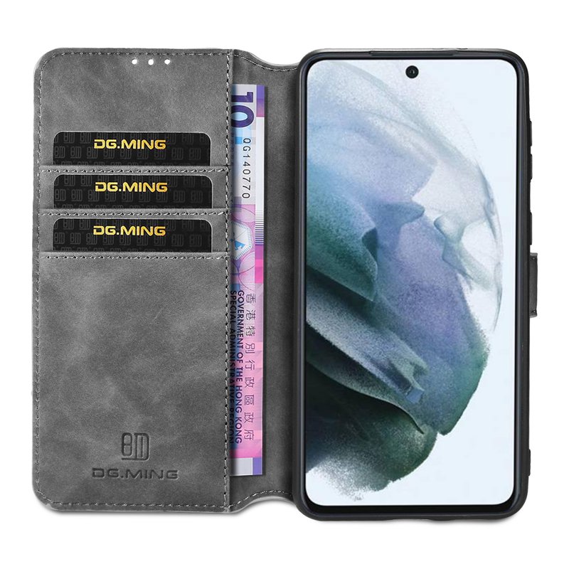 Handla denna produkt DG.MING Retro Style Läderplånbok Fodral Samsung Galaxy S21 FE Grå