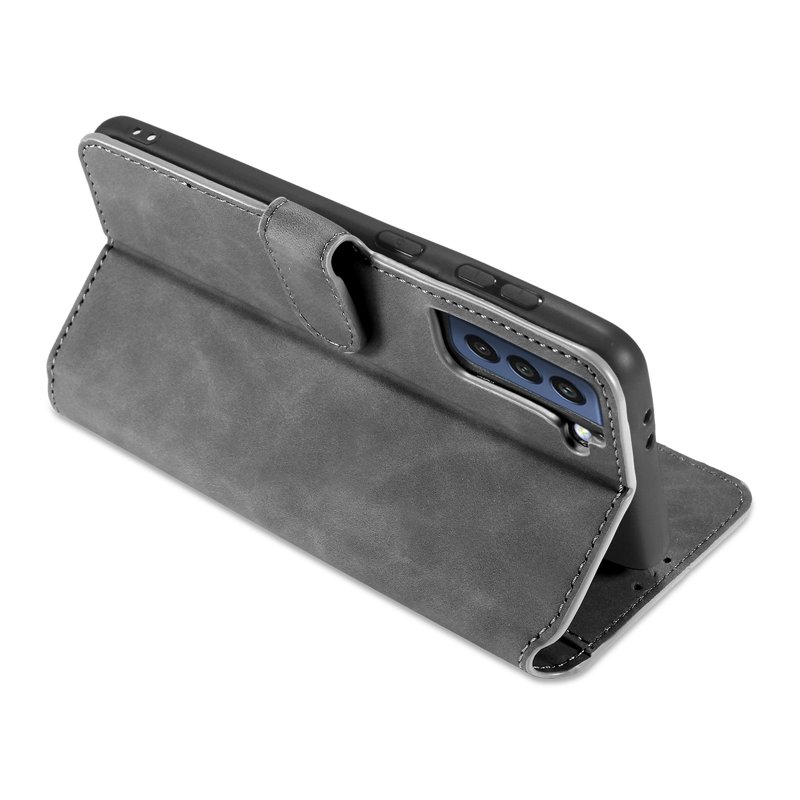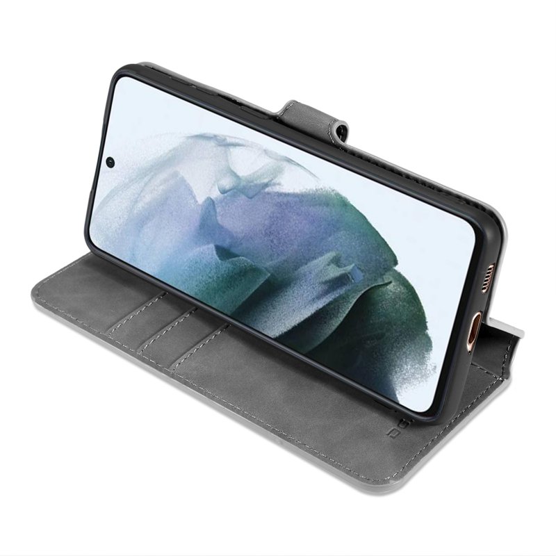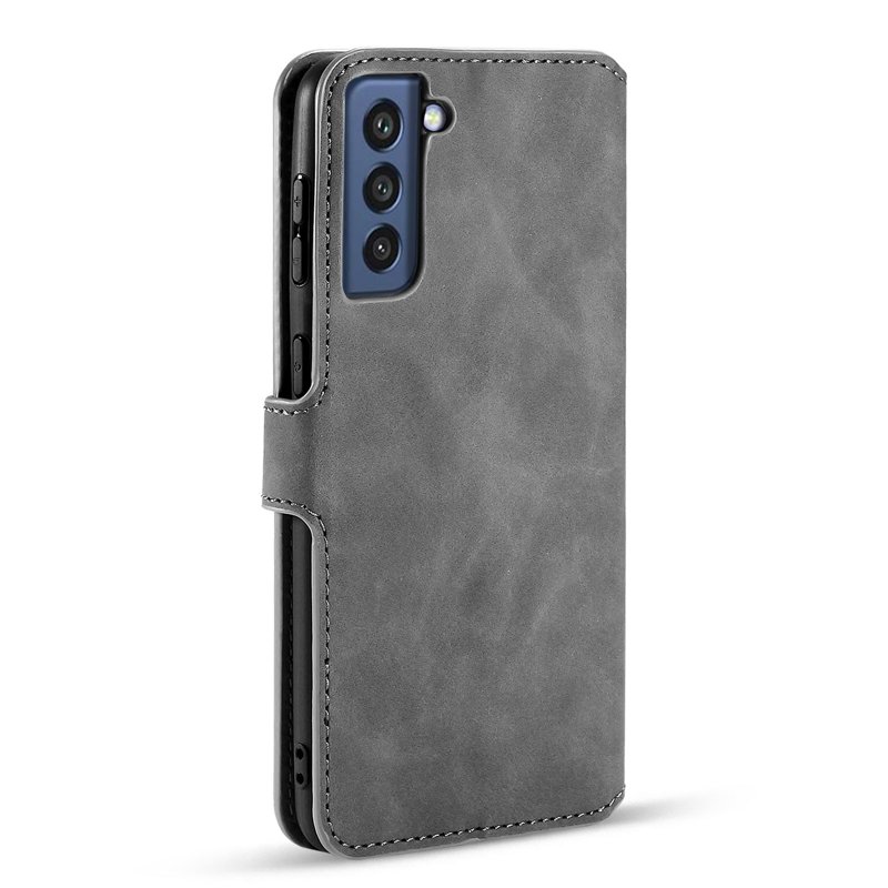 DG.MING Retro Style Läderplånbok Fodral Samsung Galaxy S21 FE Grå