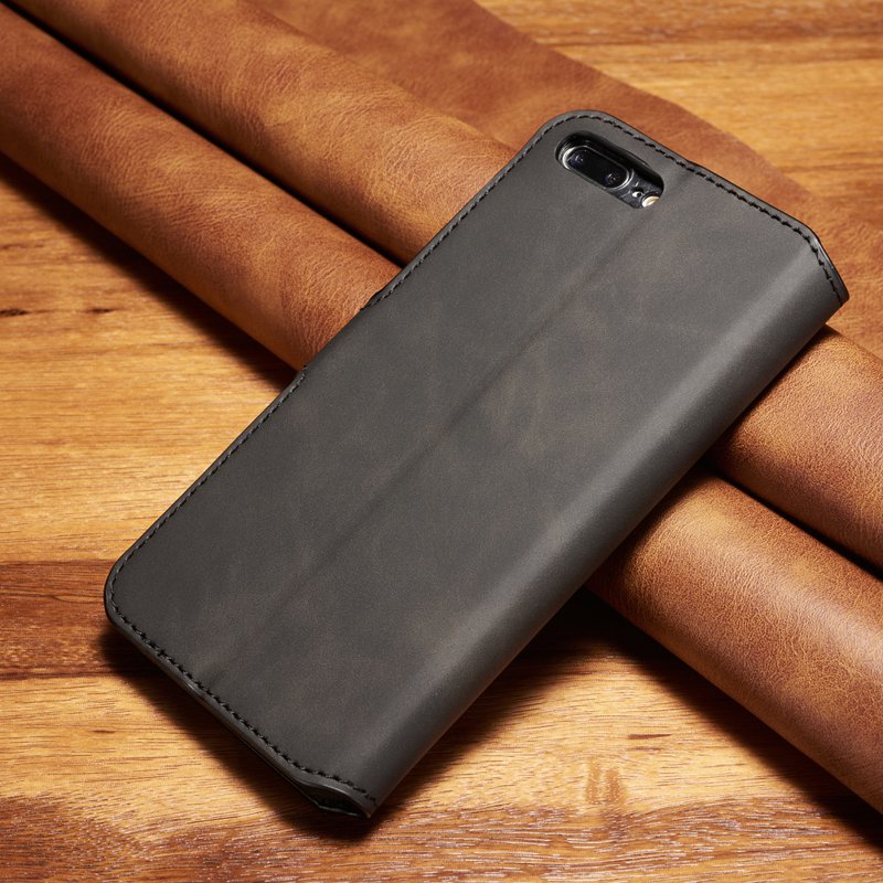DG.MING Retro Wallet Läder Fodral för iPhone 8 Plus - Svart
