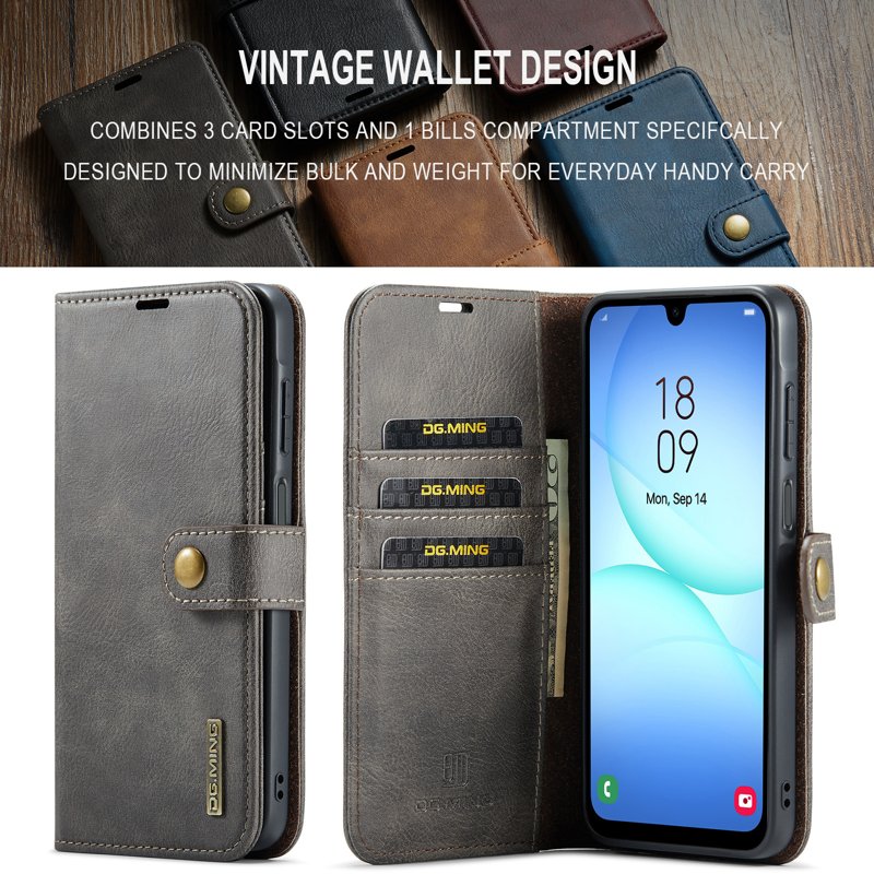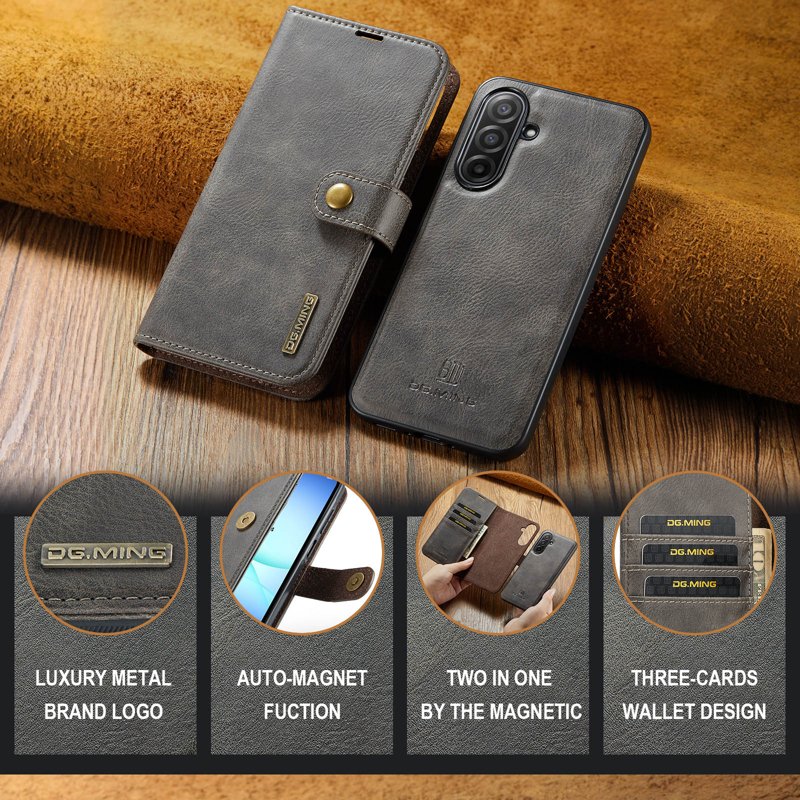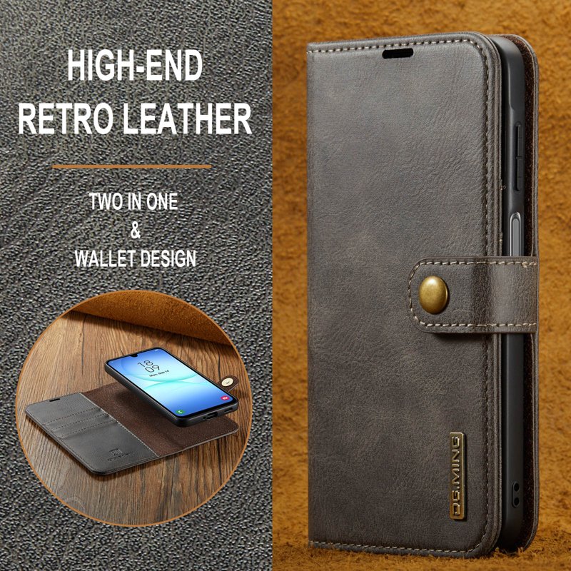 Denna 2-i-1 läderfodral kombinerar stil och funktionalitet. Med en delad läderplånbok och en avtagbar baksida i läderbelagt PC-material, erbjuder den både skydd och praktiska lösningar för dina värdesaker. Perfekt för den moderna användaren som vill ha allt i ett.
