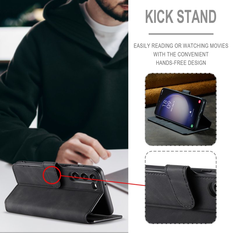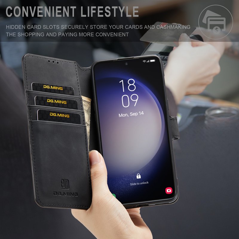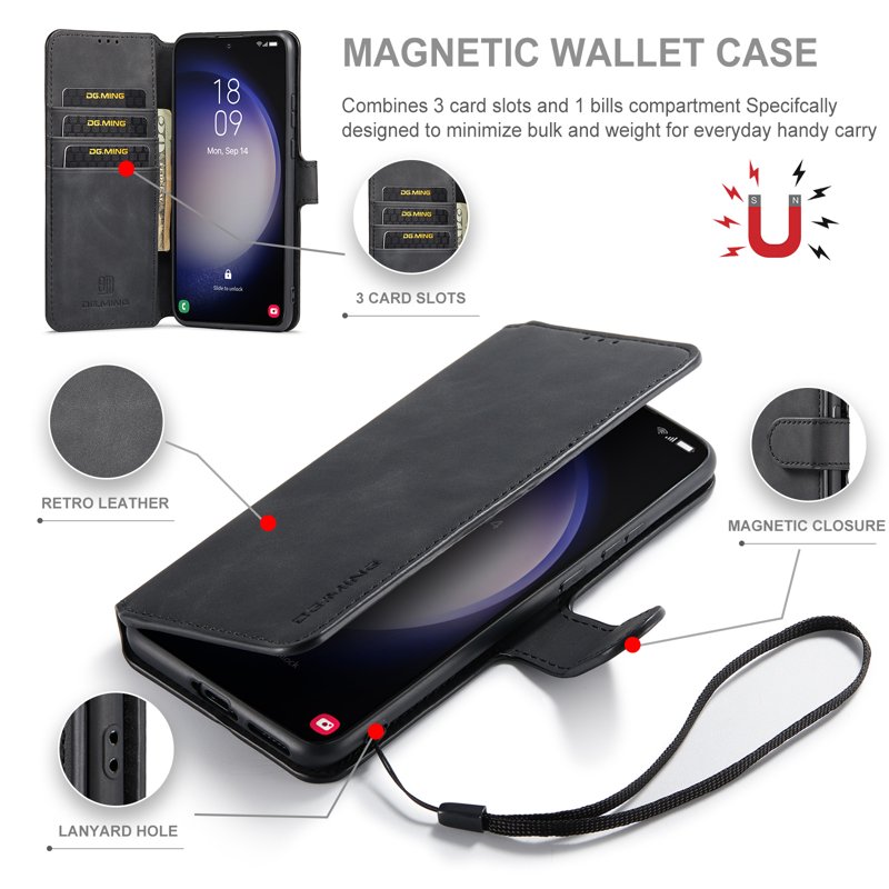 DG.MING Samsung Galaxy S23+ Retro PU Läder Fodral Svart