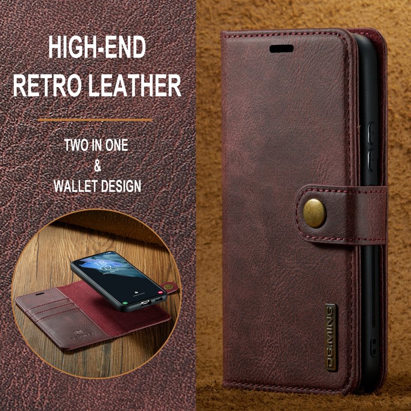 Detta 2-i-1 läderfodral kombinerar stil och funktionalitet. Med en delad läderplånbok och en avtagbar bakdel i läderbelagt PC-material, erbjuder det både skydd och praktiska lösningar för din smartphone. Perfekt för den som vill ha allt i ett.