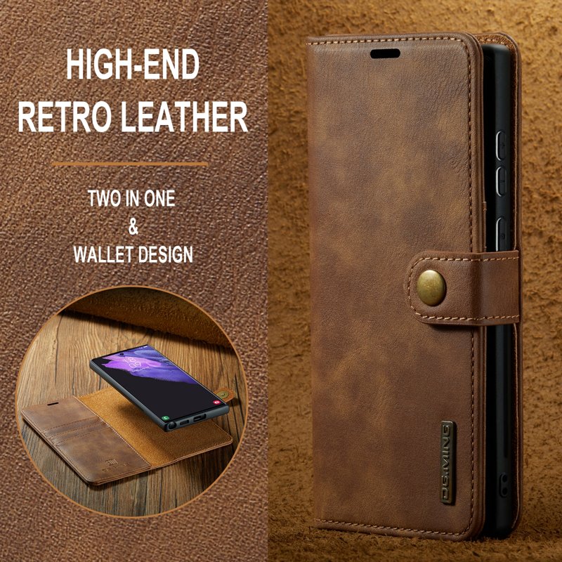 Detta 2-i-1 läderfodral kombinerar stil och funktionalitet. Med en delad läderplånbok och en avtagbar bakdel i läderbelagt PC-material, erbjuder det både skydd och praktiska lösningar för dina dagliga behov. Perfekt för den moderna användaren.