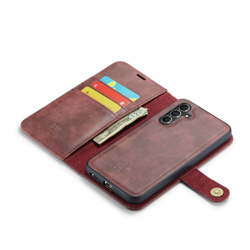 Detta 2-i-1 läderfodral kombinerar stil och funktionalitet. Med en delad läderplånbok och en avtagbar baksida i läderbelagt PC-material, erbjuder det både skydd och praktiska lösningar för din mobil. Perfekt för den moderna användaren som vill ha allt i ett.