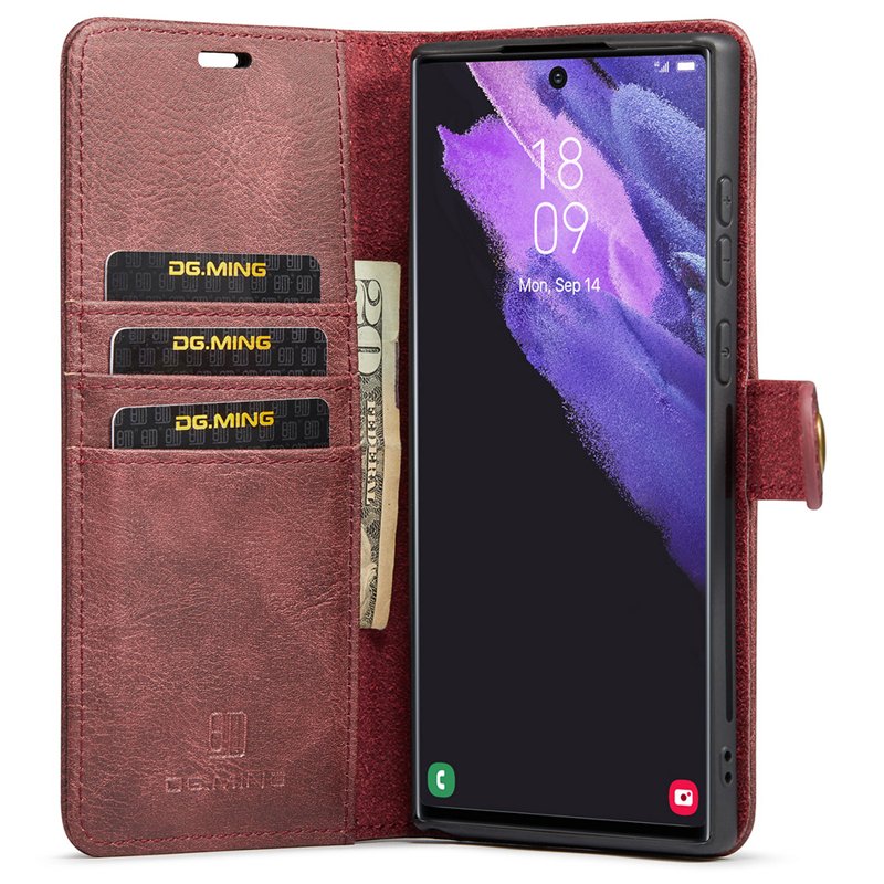 DG.MING Split Leather Case Samsung Galaxy S22 Ultra 5G Röd