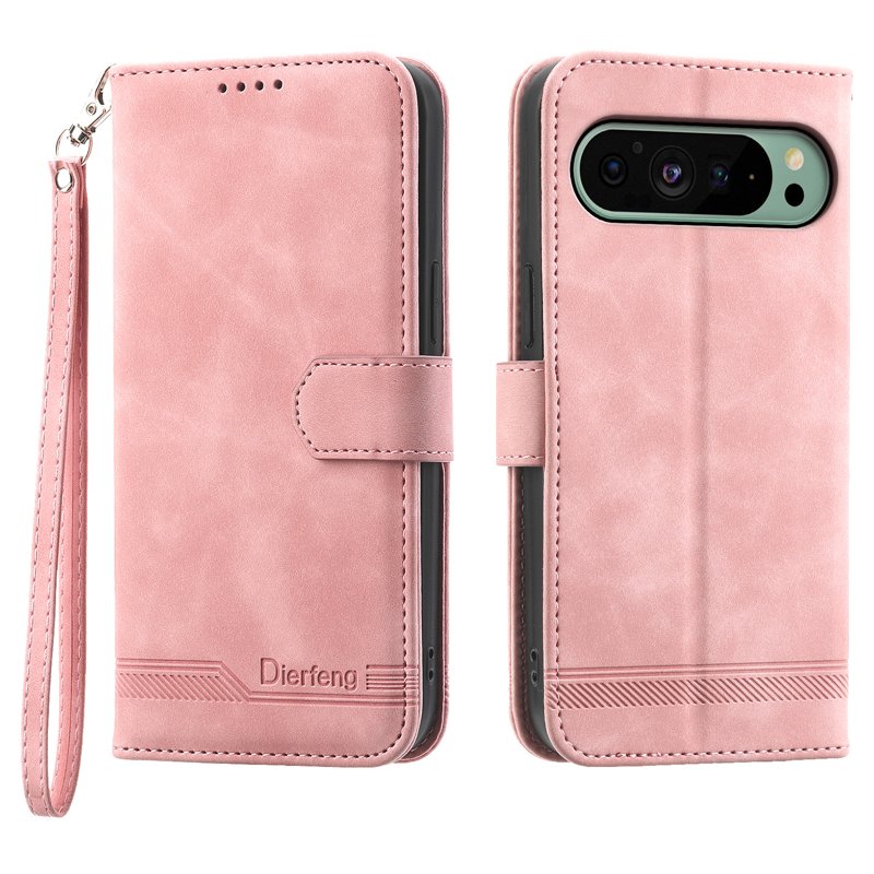 DIERFENG DF-03 Fodral för Google Pixel 9 - Äkta läder - Rosa