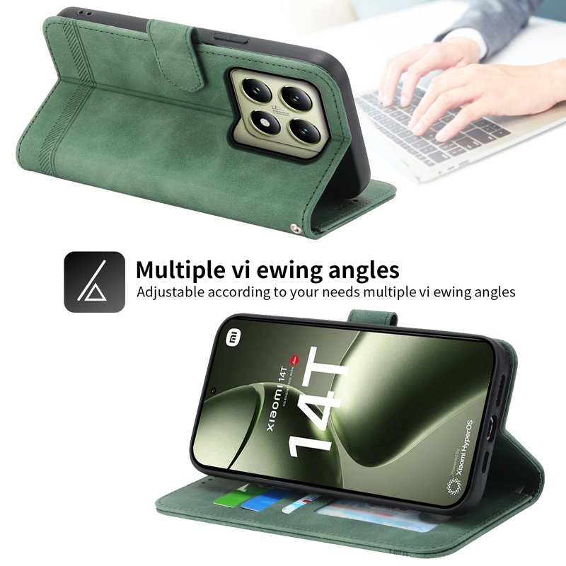 DIERFENG DF-03 fodral för Xiaomi 14T är det perfekta valet för dig som söker stil och funktionalitet. Tillverkat av äkta läder i en elegant grön nyans, erbjuder detta fodral både skydd och en sofistikerad look. Med smarta funktioner som kortfack och en ställfunktion, är det designat för att underlätta din vardag.