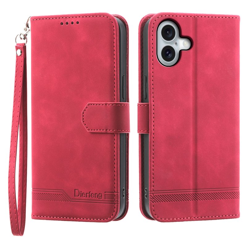 DIERFENG DF-03 iPhone 16 Plus Wallet Fodral Äkta läder - Röd