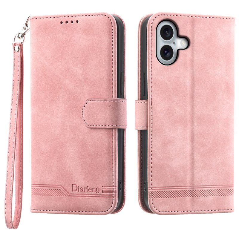 DIERFENG DF-03 iPhone 16 Plus Wallet Fodral Äkta läder - Rosa