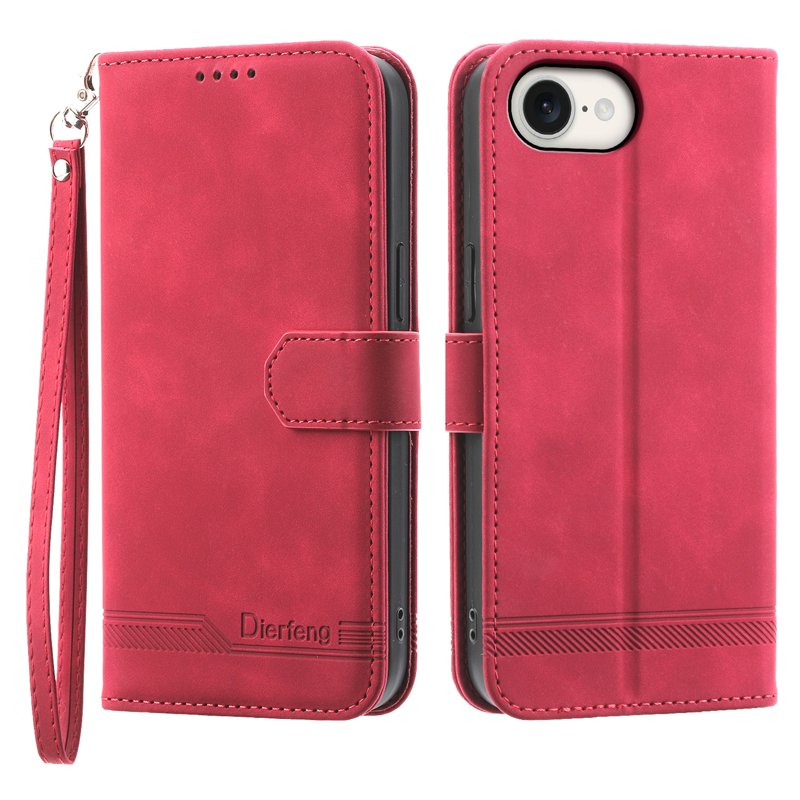 DIERFENG DF-03 iPhone 16e Fodral i Äkta läder - Röd