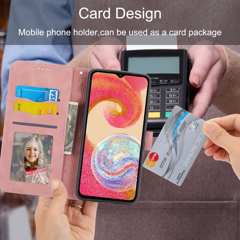 - Praktisk förvaring och ställfunktion – Fodralet har separata fack för kreditkort och en kontantficka. Det kan vikas till ett ställ för justerbar visningsvinkel.