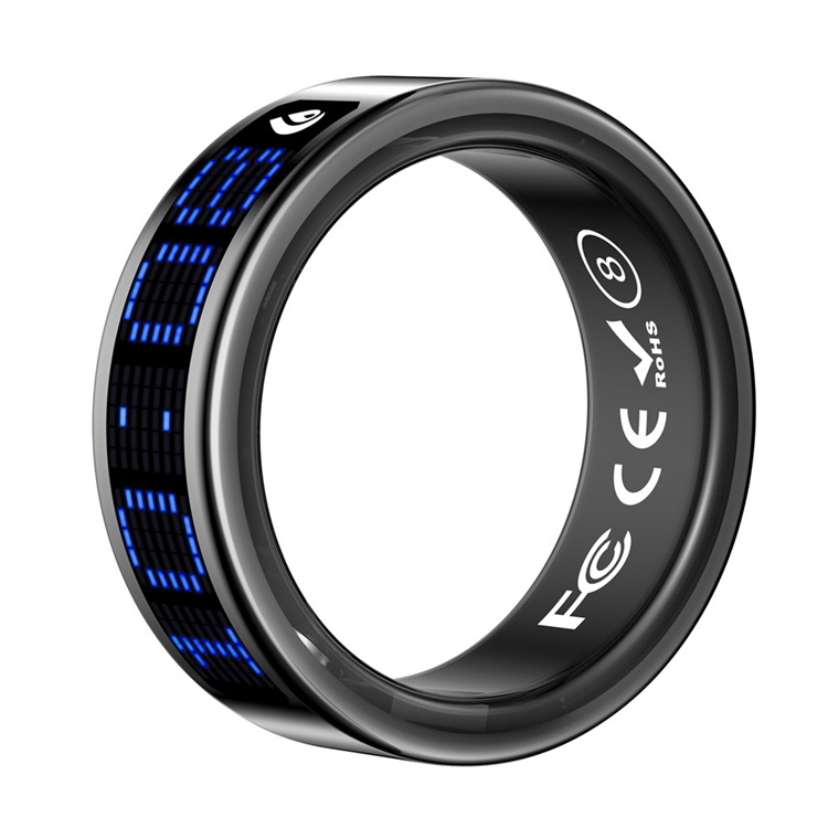 Digital Display Smart Ring med Laddningsfodral Sömnmätare Blodsyre Pulsmätare Böneräknare SR16 - Svart / Size 8