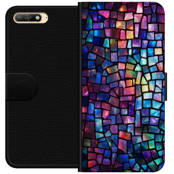 Plånboksfodral för Y6 (2018) med Disco -design. Fodralet kombinerar stil och funktion – ett slitstarkt mobilskal som skyddar mot repor och stötar samt praktiska kortfack på insidan.