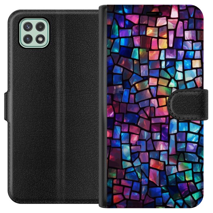 Plånboksfodral för Galaxy A22 5G med Disco -design. Fodralet kombinerar stil och funktion – ett slitstarkt mobilskal som skyddar mot repor och stötar samt praktiska kortfack på insidan.