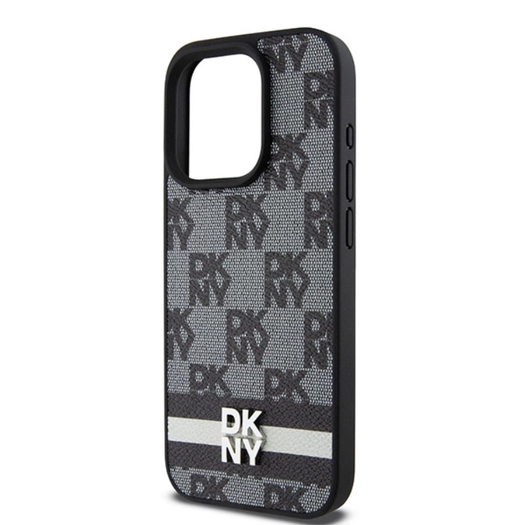 DKNY iPhone 15 Pro Max Mobilskal Läder Checkered Mono Pattern & Printed Stripes - Svart