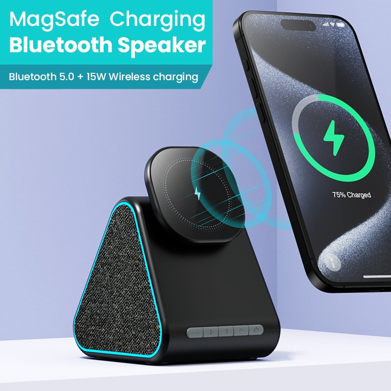 • Multifunktionell design: Kombinerar trådlös laddning och Bluetooth-högtalare i en enhet.