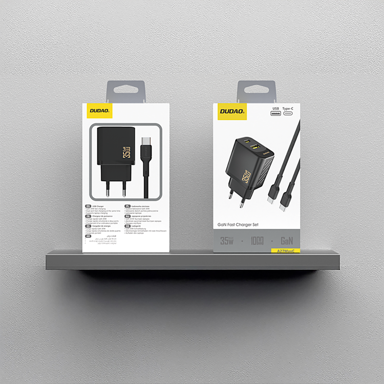 Dudao Snabbladdare 1xUSB-C 1xUSB-A PD 35W GaN med USB-C Kabel A27MaxCEU - Svart