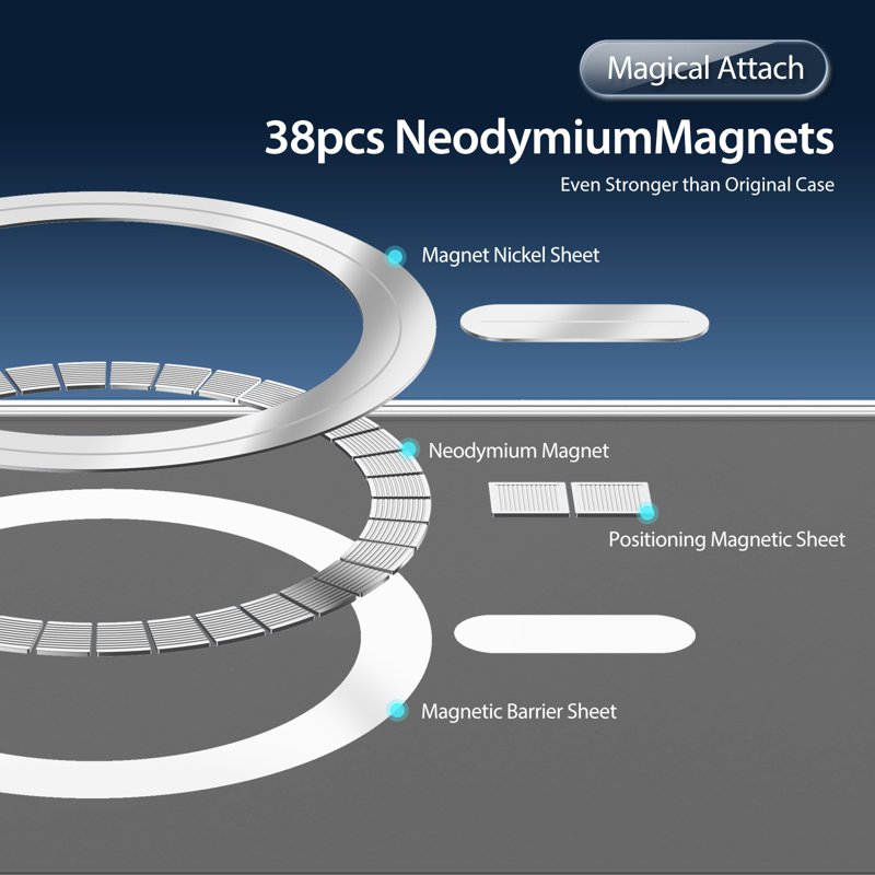 - MagSafe-kompatibilitet: Inbyggd magnetring med 38 Neodymium-magneter för säker MagSafe-laddning.